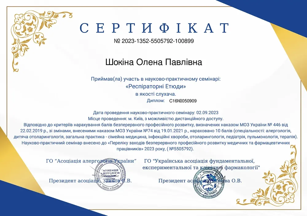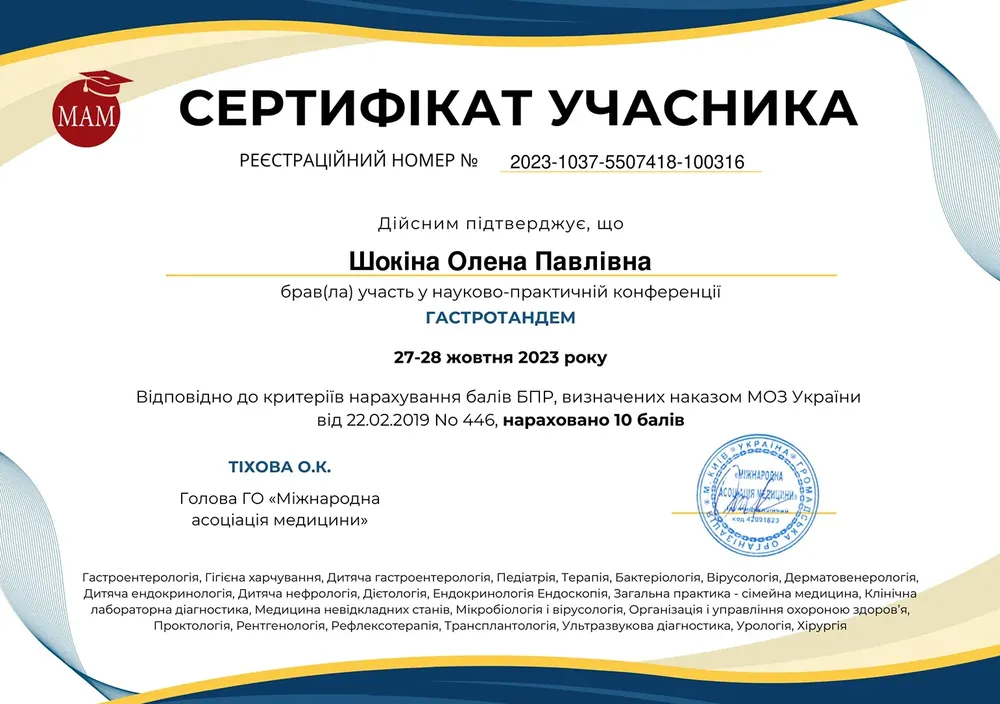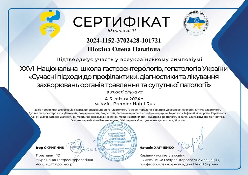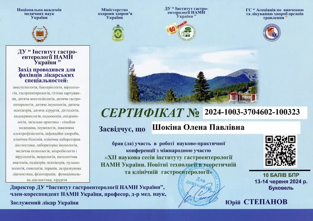 - «Дни гастроэнтерологии в Чернигове» (2023);