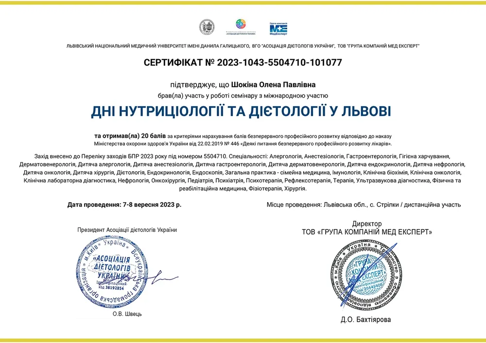 - «Дни питания и диетологии в Одессе» (семинар с международным участием) (2023);